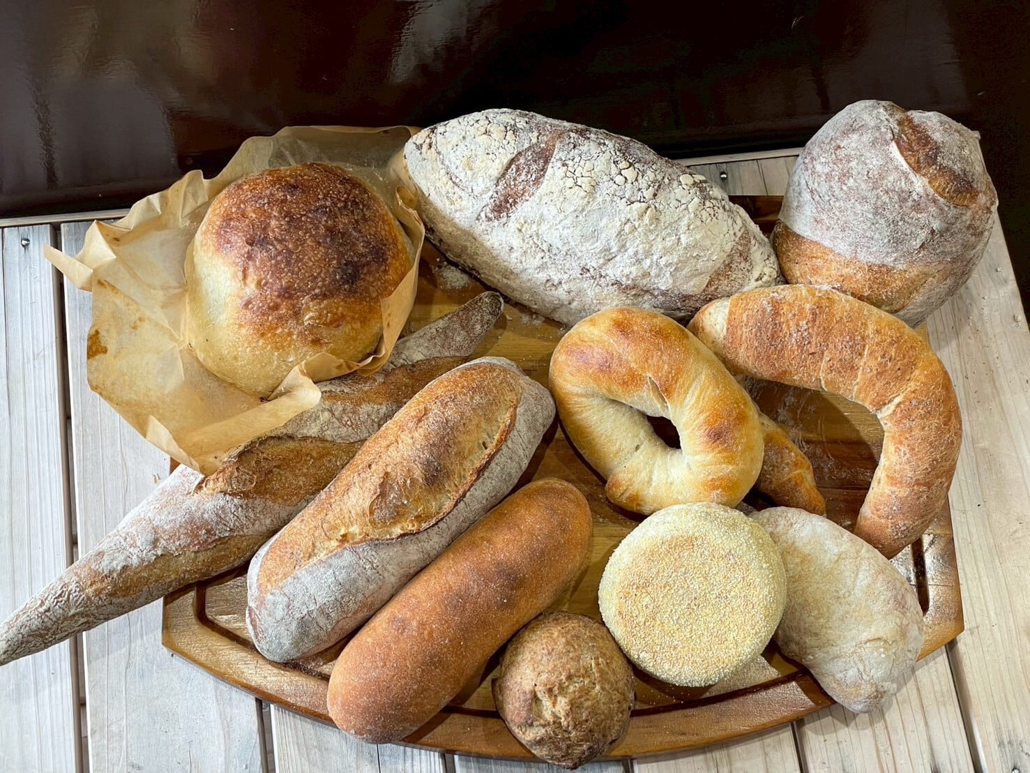 北海道産小麦・石臼挽小麦とライ麦を配合し、16時間ゆっくり発酵させ焼き上げました。小麦本来の甘み、旨み、香りを楽しめるパンです。